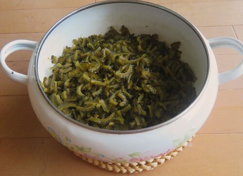 トレスギチャッテ コマルノー・・、 ♬食べ切れず、持て余し気味になっているゴーヤ、ゴーヤは、2~3日もすると痛んでくることもあり、毎年のこと、妻は、ジャムにして、冷凍保存、1年中、朝の食卓を賄えるようにしているが、今日の午後、今年2回目のゴー…