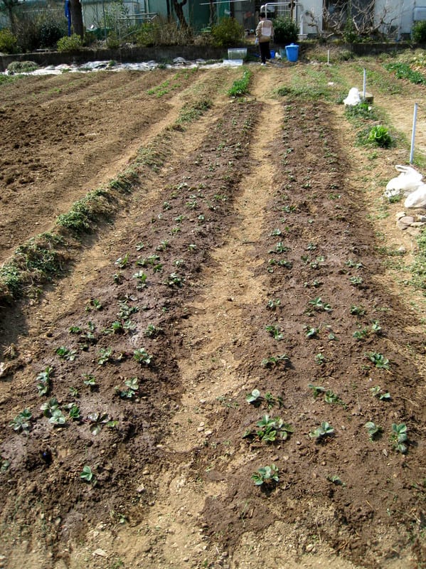 今日の主な仕事は ジャガイモの植え付け場所の掘り起し作業、イチゴの畝の草取り等々。冬期間に固くしまってしまう地質のため 掘り起し作業は 鍬だけでは 少々やっかい、毎年のこと スコップも使いました。