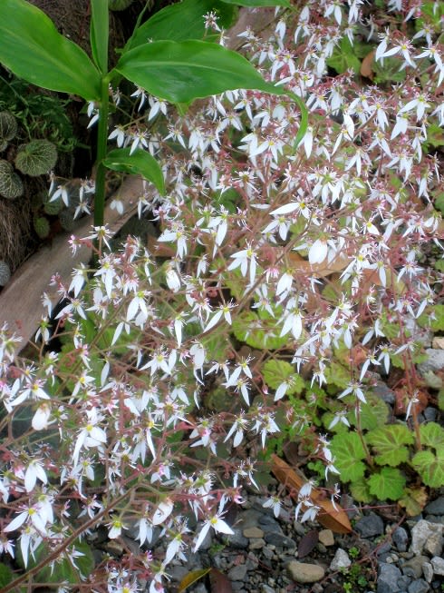 2016-05-22 あの道この道 お写ん歩(おしゃんぽ)日記 5月も中旬、当地の日の出時刻は 4時30分頃になっています。昨夜のスイミングの疲れも有り 日曜日の朝とて ゆっくりと 6時台に 歩き出しましたが やや 汗ばんでしまいました。 毎度のこと 足の向くまま 気の向くまま あの道この道、路傍や民家の庭先、空き地や土手の花を コンデジで カシャカシャ撮りながらの 徘徊です。 ユキノシタ 八重のドクダミ コバンソウ(小判草) チェリーセージ マツバギク(松葉菊) ベルビアナ
