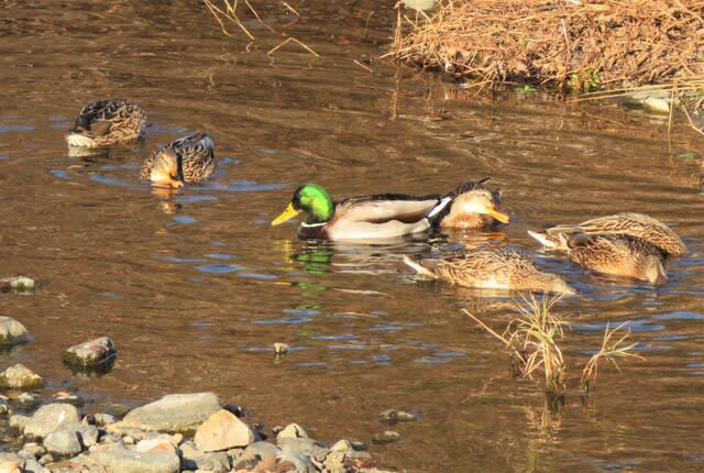 「カモ(鴨)」という鳥名は、小さい頃から知っていたと思うが、実際にしっかり観察したことも無くて、カモらしき鳥を見れば、十把一絡げで、「カモ!」と呼んでいた類だったような気がする。ところが、カモにも、いろいろな種類が有ることを知ったのも、ブログを始めた頃からだったように思う。最近になって、散歩・ウオーキングの途中でよく見かける「カルガモ(軽鴨)」位は、なんとか同定出来るようになったが、その他のカモについては、未だにはっきりせず、「君の名は?」のことが多い。これまで撮っていた「君の名は?」のままの写真の中に、「多分、これは、マガモ(真鴨)で 間違い無さそう?」と思われる写真が有り、引っ張り出してみた。