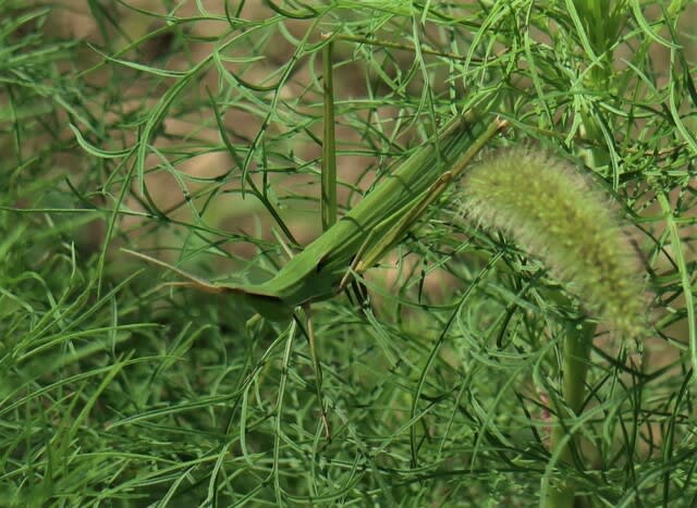 類似種に、「オンブバッタ」、「ショウリョウバッタモドキ」が有り、素人目には、なかなか見分けが付かないので、もしかしたら、間違って同定しているかも知れない。